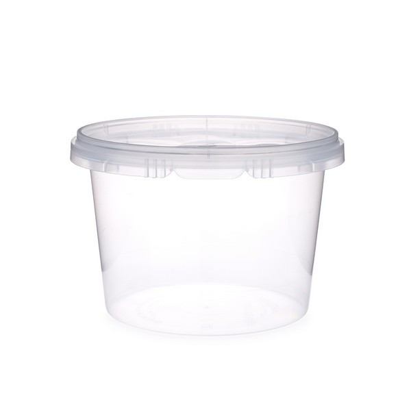 Our 16 oz clear round plastic snap-lock polypropylene(PP) containers feature a tamper-evident security, letting you and your customers know if a product has been compromised. The included tamper-evident lids are easy to open and use. These handy containers can be used to house a wide array of items, from food products such as dips and cottage cheese to non-food items such as detergents, adhesives and glues. Snap-lock containers are microwave and dishwasher safe, hot-fillable, reusable, and 100% recyclable.  Max Fill Temperature: 179.6F (82C); Max Freezing Temperature: -9.4F (-23C). Suggested label panel for lid: 3.875 inches.