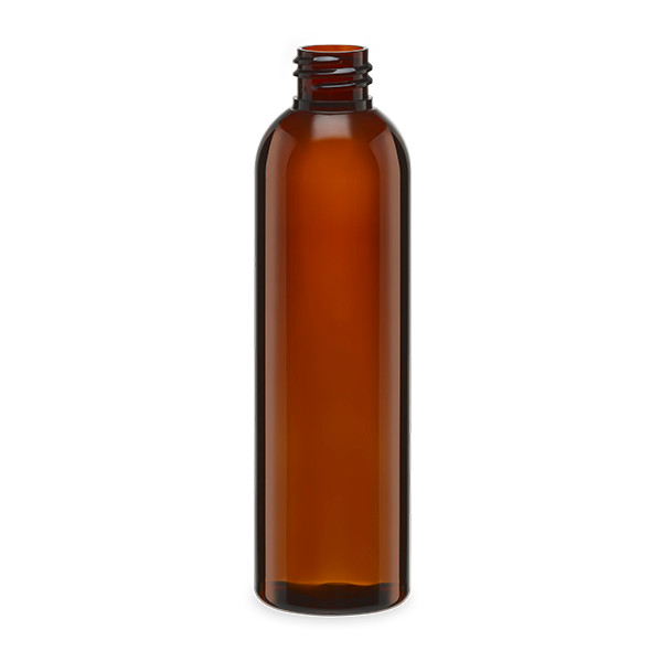 Bullet bottles, also known as cosmo rounds or imperial rounds, offer a distinctive round, tall shape with soft shoulders and a round stable base to give your product a sleek and stylish appeal. The durable PET plastic allows you to see the product housed inside while offering impact resistance. These amber PET plastic bullet bottles provide UV filtering properties perfect for protecting light-sensitive materials.