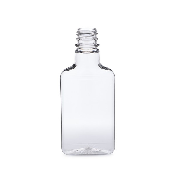Our PET plastic flasks are light weight and shatter-resistant alternatives to glass. PET plastic provides glass-like clarity without the weight, making them cost-effective for shipping. These portable bottles, which have traditionally housed liquor and spirits, are now popular for BBQ sauce, maple syrup, marinades, salad dressing, mouthwash and more. Caps sold separately. Â Choose from three different sizes 6.7 oz (200 ml), 12.7 oz (375 ml) and 17 oz (500 ml).