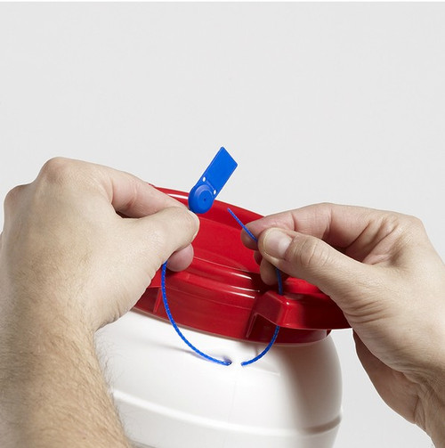 Includes a red screw cap with integrated handles and a rubber gasket lining. Tamper-evident strips available for purchase upon request (MOQ 1,000 pieces).
