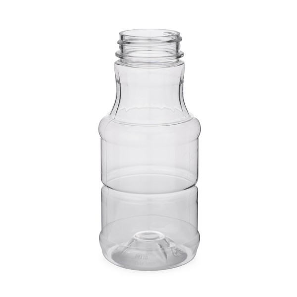 Showcase your barbecue sauce, hot sauce, honey or dressing with our PET plastic decanters. Ribbed sidewall panel provides extra strength. Not for carbonation. Please test with your specific product to ensure proper performance. Maximum Fill Temperature: 140°. Caps sold separately.