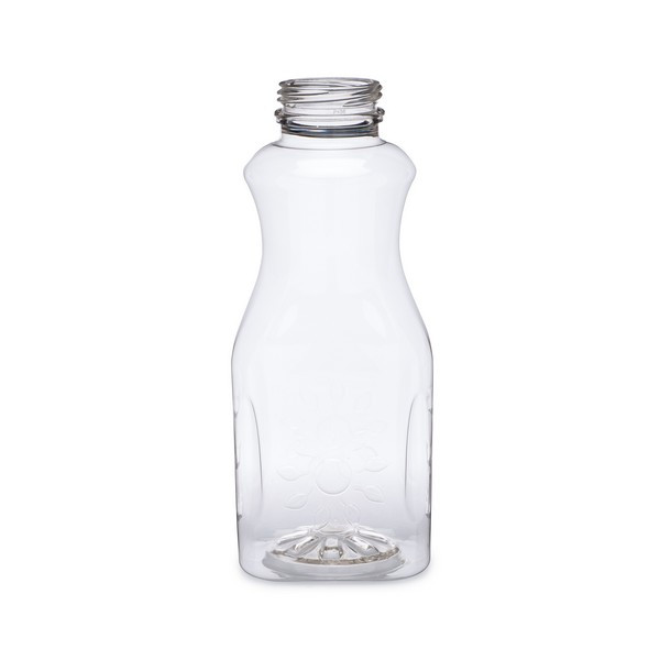 The unique shape of these bottles and the simple embossed design will give your products a touch of elegance to make them shine on the shelf. Some popular uses for these decanters include cold pressed juice, iced tea, chilled beverages, and dairy products. Cap sold separately.